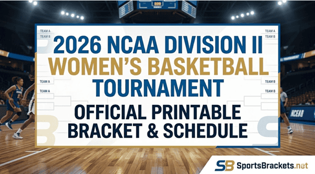 Afdrukbare 2026 NCAA Division II basketbaltoernooibeugel voor dames