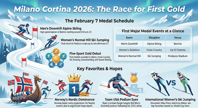 Dat Olympische Winterspelen 2026 in Milaan behaalde Cortina zijn eerste volledige medailledag Zaterdag 7 februaridirect na de openingsceremonie op 6 februari in het San Siro Stadion in Milaan. De voorbereidende competities (curling, rodelen, ijshockey voor dames, etc.) beginnen op 4 februari, maar op 7 februari is het debuut gouden medaille in vijf sporten: alpineskiën, langlaufen, schansspringen, snowboarden en schaatsen.
