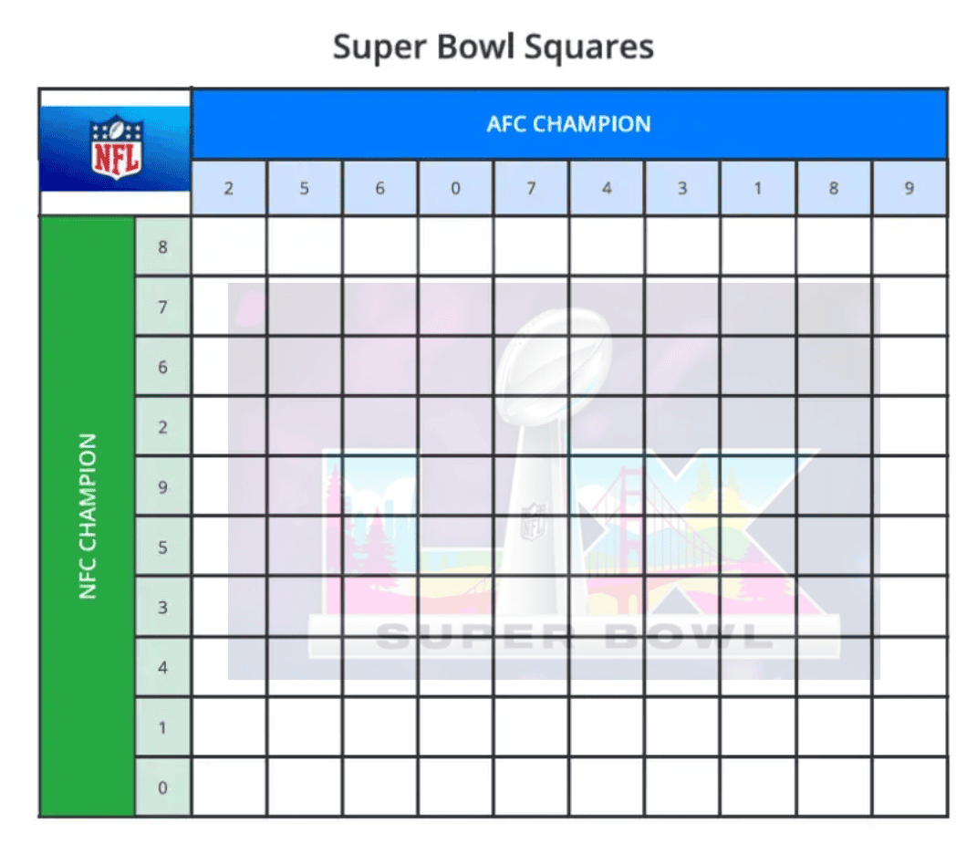 Super Bowl LX is nog maar een paar dagen verwijderd. Zondag 8 februari 2026 in Levi’s Stadium, waar de Seattle Seahawks (NFC-kampioenen) het opnemen tegen de New England Patriots (AFC-kampioenen) in een rematch van Super Bowl XLIX. Of je nu een watchparty organiseert, een kantoorzwembad runt of op afstand met vrienden samenwerkt, iedereen leren hoe je Super Bowl Squares (ook wel voetbalveld of vierkant zwembad) moet spelen, is het perfecte spel dat gemakkelijk en leuk is. Geen diepgaande voetbalkennis vereist. Gewoon geluk en een 10×10 raster.