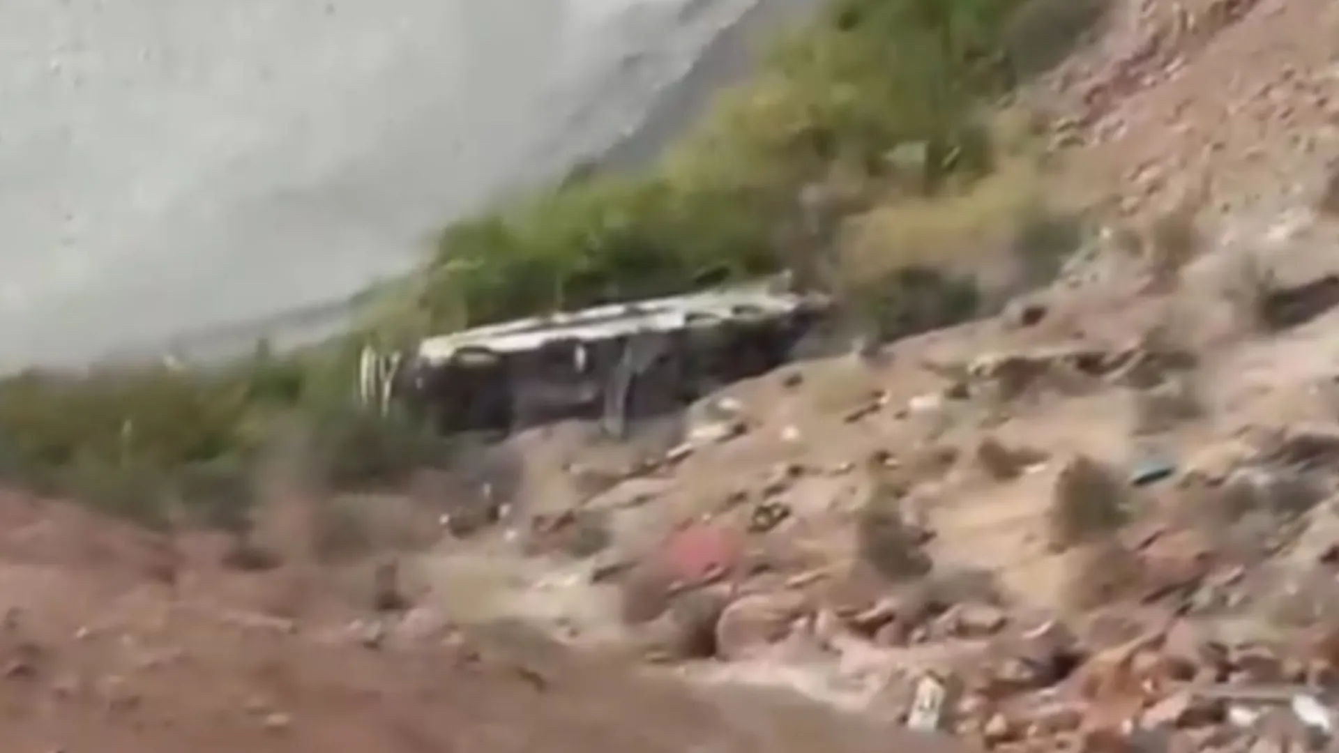 Het voertuig stortte bijna 220 meter in een groot ravijn nabij Ocona in de zuidelijke regio Arequipa van het land.